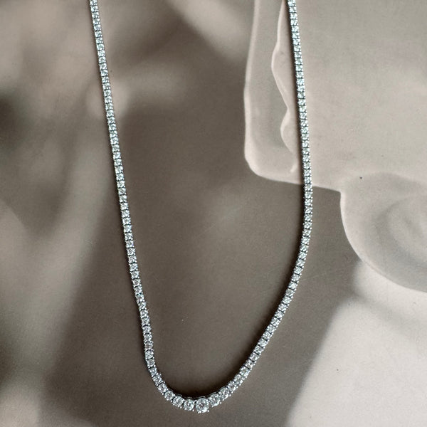 This necklace features .15 ct of Diamond in the Center Stone and 5.18 cts of Diamonds in 18 kt White Gold.